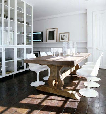 In a matter of months, we will be moving north ( I know, we just moved!), and I am excited about this move! The places we have looked at so far have a breath-easy openness to them and expansive windows... I'm in love with all the light! Since we are moving to a colder climate, something draws me to a more natural and cozy look. I am absolutely intrigued right now with Vicente Wolf's mixture of rustic and mid-century design.